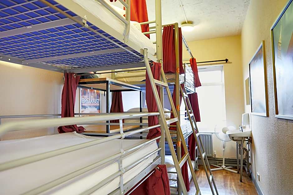 9-BED MIXED WITH WITH EXTERNAL SHARED BATHROOM is 215 square feet and includes bunk beds plus hairdryer.